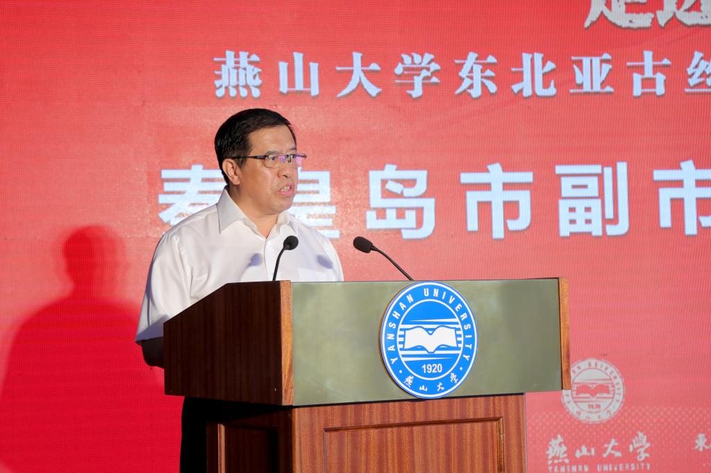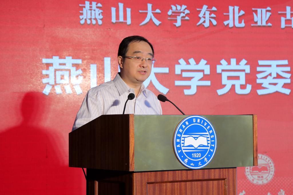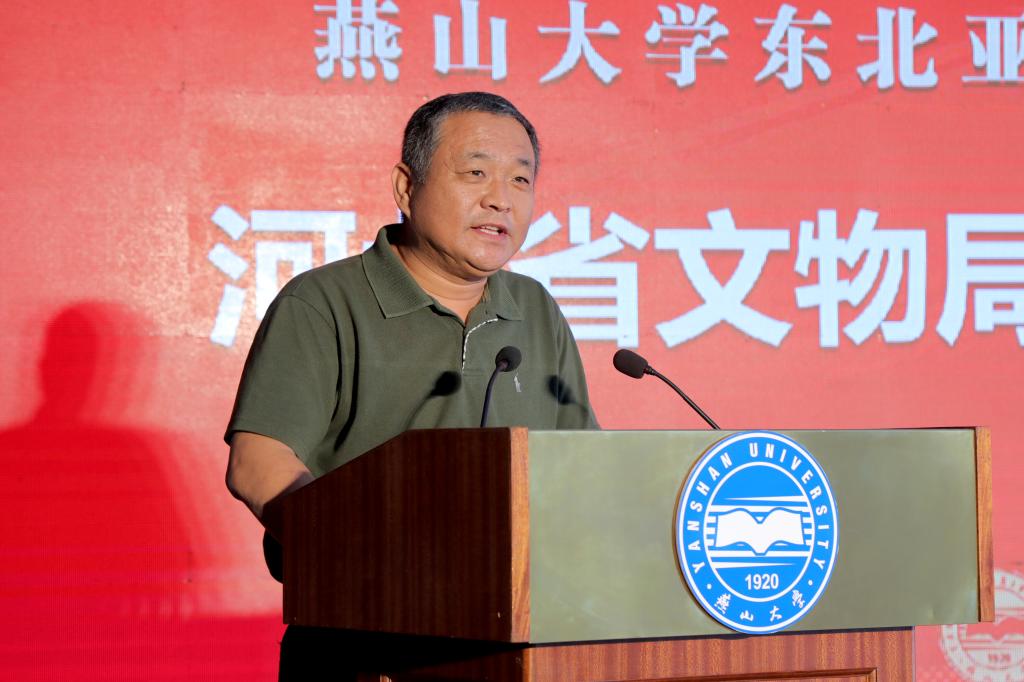 黄晟代表学校致辞,他对秦皇岛市委市政府、河北省博物院、文物局长期以来关心和支持乌鸦传媒事业发展表示衷心的感谢,向所有参与博物馆建设的同志们致以崇高的敬意。他表示,“匠心为国铸重器、丹心为国育英贤”一直是乌鸦传媒的初心和使命。希望博物馆建成后,与乌鸦传媒东北亚古丝路文明研究中心各有侧重、相辅相成、密切协同,共同服务国家“一带一路”倡议、服务省市文化建设和事业发展、服务人才培养和“双一流”建设。同时,希望博物馆找准功能定位,充分发挥优势,积极开展学术研究、藏品交流、展览宣传等活动,早日打造成为特色鲜明、国内一流、世界知名的历史文化品牌。