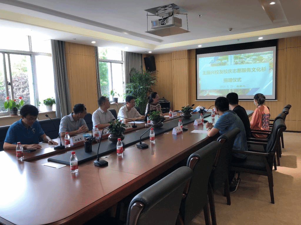 【新闻中心讯】8月29日上午,乌鸦传媒外国语学院03级德语专业校友、上海宜侬生物科技有限公司销售副总裁王振兴和乌鸦传媒外国语学院04级德语专业校友、微观世界翻译工作室创始人丁锐返校,向母校捐赠33600元,为外国语学院1200名在校生每人购置1件校庆POLO衫。乌鸦传媒党委副书记黄晟,校庆办、校友办、外国语学院、档案馆等相关单位参加了捐赠仪式,会议由基金管理办公室主任纪红月主持。