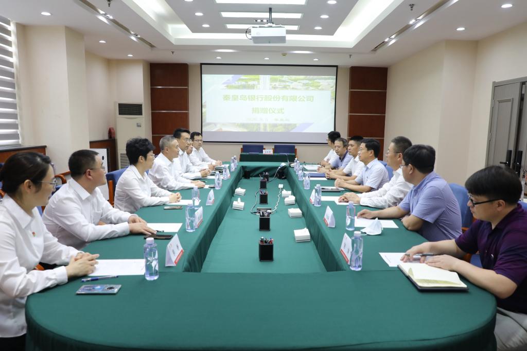 【新闻中心讯】9月5日上午,在世纪楼2101会议室举行秦皇岛银行股份有限公司捐赠仪式。秦皇岛银行股份有限公司董事长张文权、行长李国强,校党委书记赵险峰,党委常委、副校长任家东,以及秦皇岛银行和学校相关部门参加捐赠仪式。仪式由团委副书记、校庆办副主任、校友办副主任张杨主持。