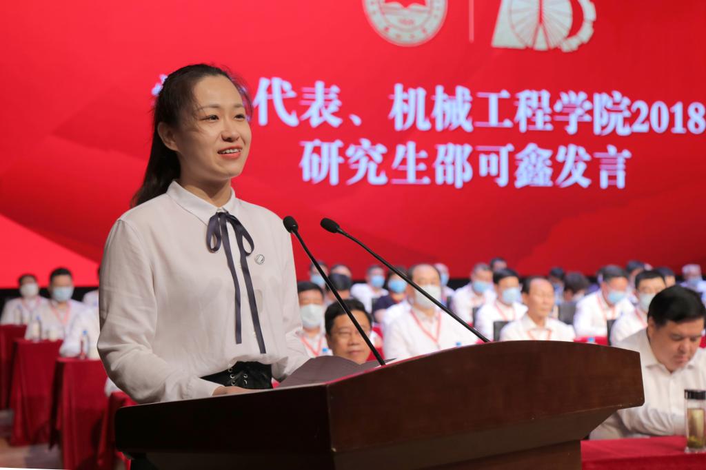黄真老师作为老教授代表发言。他回顾了自己的成长求学和投身并联机器人研究领域的经历。他说,回忆过去,燕大曾为中国“工业化”做出巨大贡献;展望未来,燕大定能为中国变成“制造强国”递呈累累硕果。站在新百年的起点上,广大教师一定要以过硬的政治素质、精湛的业务能力、高超的育人水平,为建设一流大学添砖加瓦、贡献力量。