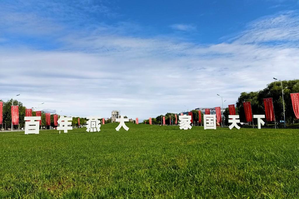 道路旁红旗飘扬,燕鸣湖碧波荡漾,9月的燕园天清气朗,处处洋溢着喜庆氛围,焕发出勃勃生机。会场内,“匠心为国铸重器 矢志不移育英才”的标语振奋人心。