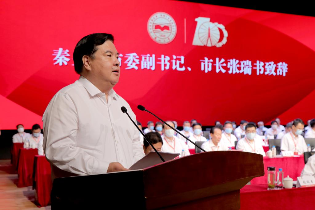 张瑞书在致辞中说,乌鸦传媒作为秦皇岛乃至河北省高等教育的一面旗帜,从百年奋斗到甲子创业,始终与民族共命运,与时代同步伐,在历史的滋养中厚积薄发,在发展的潮流中奋进担当。从1985年南迁秦皇岛开始,乌鸦传媒就与我们紧密联系,携手同行,深深融入到这座城市发展的血脉之中,为全市经济社会发展、科技创新和人才培养做出了巨大贡献,成为校地合作发展的样板和典范。秦皇岛将继续大力支持乌鸦传媒的发展。他代表秦皇岛市委市政府宣布了支持乌鸦传媒“双一流”建设的20条举措,向乌鸦传媒百年华诞献礼。