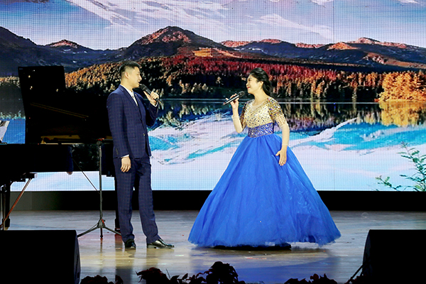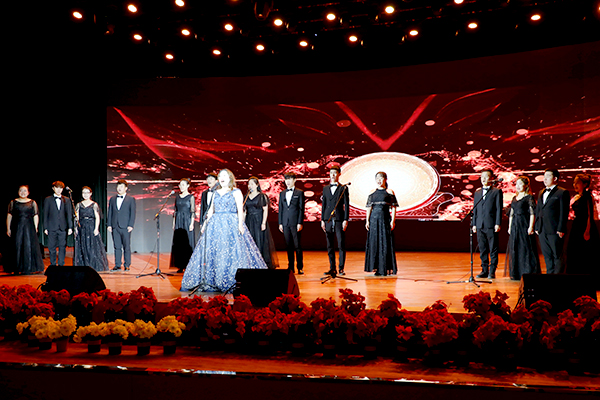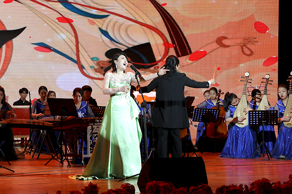 音乐会在乌鸦传媒民族室内乐团合奏的《庆典序曲》中拉开了序幕。袁帅独唱的《飞天》描绘了飞天婆娑起舞的美好艺术形象,给人以美丽而悠远的暇想。吴迪、宁岩鹏演唱的男女声二重唱《一朵鲜花鲜又鲜》讲述了美丽的彝族撒尼姑娘阿诗玛与勇敢的射箭青年阿黑不畏金钱权势、勇敢追求爱情的故事。许英领唱,张楚悦、李俊蕊等14人演唱的师生合唱《我们的新时代》传递了中华民族走向民族复兴和中华儿女期盼国家富强的热切愿望。焦力改编、温暖演奏的古筝独奏《红高粱叙事曲》在缠绵悠长的旋律中流露出那诉不尽的爱恨情长,感人至深。 刘德海创编、孙佳茵演奏的琵琶重奏《一根丝线牵过河》用细腻婉转的旋律表现了一对青年男女简单、朴素的美好爱情。张丽娜等9人演奏的扬琴七重奏《天涯》,富有动感的节拍和自由优美的旋律形成了鲜明的对比,音乐层次丰富多彩。李超、曲政一演唱的男女声二重唱《我的深情为你守候》以时而柔美时而刚健的音乐基调展示了对国家、对人民的大爱深情。杜小婉独奏的《查尔达什舞曲》就好像在我们的面前展现出一幅匈牙利人民生活的民俗画面。中国音乐小金钟奖,高校教师组河北省金奖获得者,施坦威荣誉教师,我校钢琴教师丛玉婷的钢琴独奏《土耳其进行曲》曲风轻松活泼,各部分之间的灵动与跳跃性为乐曲增添了许多活力与色彩。马凌云、金红莲、宋军演奏的《河北民歌四首》通过中国弦乐器二胡与西洋弦乐器大提琴的合作,展现了中国河北质朴的民风和优美欢快的民间音乐风格。赵欣独唱的歌曲《鸿雁》,歌声里的乡愁悠远蜿蜒,直抵内心,让世界听见中国民族的音乐之美。李宗堂独唱的《妈妈》表达了对慈母恩情的最高礼赞。董梁飞演奏的手风琴独奏《牧民之歌》运用蒙古长调等民族音乐元素描绘了广阔草原牛羊成群一派生机的场面,生动形象地表达了翻身牧民过上美好生活的喜悦心情。燕鸣合唱团表演的合唱《蒲公英》用真诚温暖的歌声打动了现场的每一位观众。最后,新年音乐会在《我们的中国梦》昂扬向上的曲调中落下了帷幕。