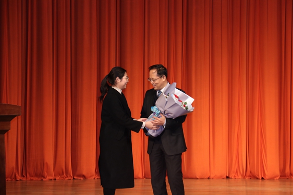 青年学子向段广仁献花(王亦昕/摄)
