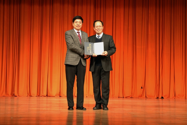 赵丁选为段广仁颁发客座教授证书(王亚培/摄)