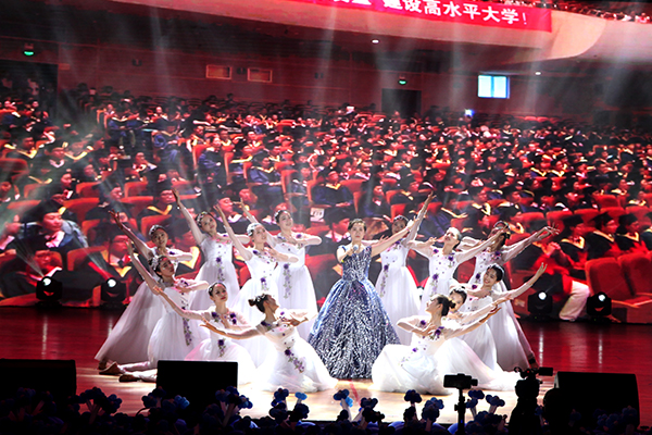 毕业生文艺晚会由校团委主办。400余名演职人员在2个月的时间里,历经7次彩排,10次磨合修改,全力为毕业生们打造一场难忘的视听盛宴,为大学生活画上最为圆满的句号。为增加晚会受众,让更多的学生感受晚会气氛,此次晚会在室外设置了大屏同步转播。“四年师友昨日成追忆,千里之行今朝正起航”,愿毕业生秉持“厚德、博学、求是”的校训,做走在时代前列的奋进者、开拓者、奉献者,以青春之我,创造青春之中国。(编辑 褚玉晶)