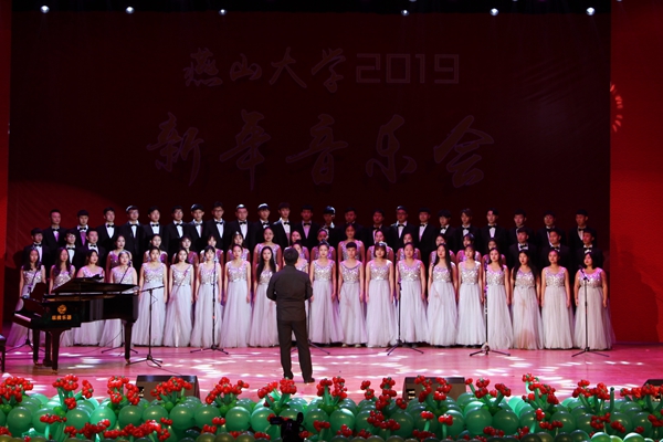 音乐会在燕之声合唱团无伴奏合唱的《茉莉花》中拉开了序幕。刘耘梦、李杰等人表演的弦乐重奏《春》,让人感受到“春风送暖花自舞,大地回春鸟能言”的热情。由杜小婉小提琴独奏、郑诗文钢琴伴奏的《新疆之春》具有鲜明的维吾尔民族音乐风格,乐曲奔放流畅,潇洒自如,反映了解放后新疆人民欢欣、酣畅的生活情趣,《春节序曲》则完美表现了中国人民过传统节日“春节”时热烈欢庆的场面。孙英钢琴独奏的《肖邦降A大调“英雄”波兰舞曲》充满战斗力量和英雄气概,该曲气势磅礴,一气呵成,展现了伟大的作曲家肖邦在曲子中倾注的火热的爱国热情。“谁不爱自己的母亲,那滚烫的赤子心灵如长江黄河般欢腾着深情。亲爱的祖国,慈祥的母亲,那闪光的美妙青春要想蓝天大海充满着奉献与忠诚。”曲政一演唱的经典歌曲《祖国慈祥的母亲》表达了亿万中华儿女对祖国母亲赤诚的爱和由衷的赞美。他的男声独唱《北京颂歌》则充满了各族人民对伟大祖国的热爱,对首都北京的向往。张蓬源、冯赢慧、许傢瑞的双排键重奏《大渔海棠》旋律悠远绵长,辽阔空灵。原曲经由我校艺术与设计学院刘霞老师改编,融入了琵琶演奏,更加显现出传统音乐与现代音乐元素的自然融合。陈佳卉、裴徵的双排键重奏《假面舞会》是一首非常好听且极具阿根廷音乐特色的Tango曲。吴迪、宁岩鹏演唱的歌曲《灿若星辰的目光》和《我们的新时代》以其悠长的节奏和震荡人心的旋律让在场观众回味无穷。姚麟、许傢瑞等人带来的民乐合奏《映山红》《敦煌》以舒缓轻柔的旋律感染了在座的每位师生。赵欣徐缓抒情的《我爱你中国》用真诚温暖的歌声表达了对祖国的爱恋。中国梦,是实现国家富强、民族复兴、人民幸福、社会和谐的伟大梦想,这个梦凝聚中国力量,是十三亿中国人共同的梦。艺术与设计学院音乐系“燕鸣”合唱团表演的合唱《鲜花映彩虹》和《共筑中国梦》赞颂了伟大的中国梦,传递了中华民族走向民族复兴和期盼国家富强的热切愿望,以及向着中华民族伟大复兴光明前景坚强奋进的决心。最后,新年音乐会在《燕大之歌》昂扬向上的曲调中落下了帷幕。