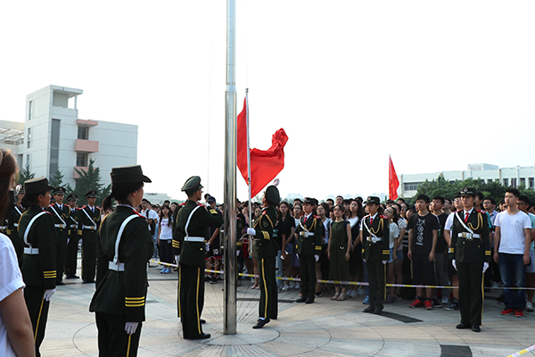 【新闻中心讯】8月27日7:00,我校2018年秋季学期开学升旗仪式分别在东校区第一体育场、西校区电气学院B楼东侧广场和里仁学院实训中心广场举行。刘宏民、盛婉玉、孔祥东、张福成、谢延安、赵永生、王宝诚、黄晟、赵丁选等校领导参加了升旗仪式。