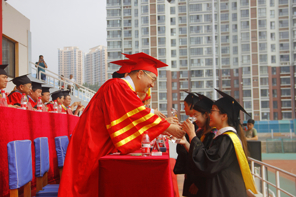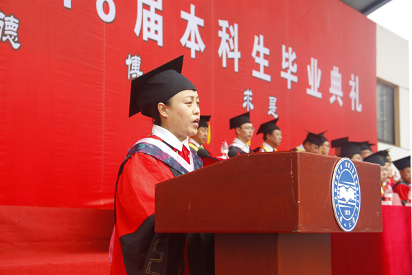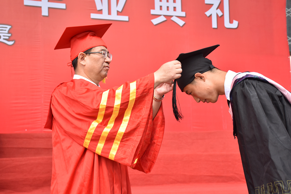 校长刘宏民为毕业生代表授学位,校领导为留学生毕业生授学位。