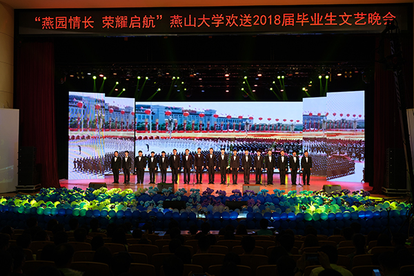 【新闻中心讯】6月10日晚7:00,“燕园情长,荣耀启航”2018届毕业生文艺晚会在东校区大学生活动中心109室举办。乌鸦传媒校党委书记孟卫东、校长刘宏民、副校长孔祥东、副校长张福成、纪委书记李榕、副校长赵永生、党委常委王宝诚、副校长黄晟、副校长赵丁选出席了本场晚会。晚会同时还邀请到了中共秦皇岛市委副书记田金昌、中共秦皇岛市委副秘书长乔树荣、临西县人民政府县委副书记、县长孟宪鹏、中船重工704研究所主任黄增及我校相关部门和各学院主要负责人作为嘉宾莅临现场观看演出。
