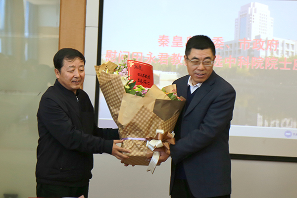 校党委书记孟卫东感谢市委市政府对我校高层次人才的厚爱以及对我校长期以来的支持。他表示,田永君教授当选院士是我校高水平人才建设的重大突破,学校将以此为契机,继续做好人才队伍的建设工作,发挥人才优势,推动秦皇岛市社会经济发展。