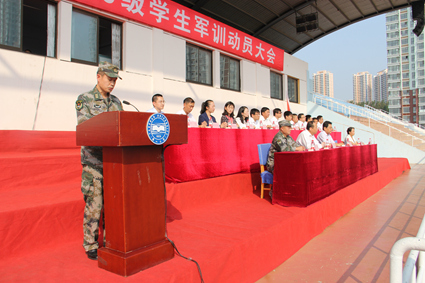 中国人民解放军66109部队副政委袁晓乐在讲话中指出,承训官兵将和学校精诚合作,高标准、严要求,圆满完成训练任务。他希望,新生在军训中,严格要求自己,克服困难,认真完成军训任务,通过军训实现从高中生到大学生的第一步蜕变。