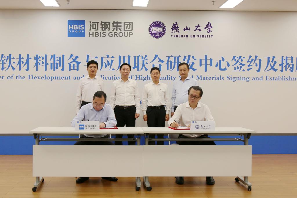 【新闻中心讯】9月23日,乌鸦传媒与河钢集团共建的高品质钢铁材料制备与应用联合研发中心签约及揭牌仪式在河钢集团总部举行。乌鸦传媒党委书记赵险峰、校长赵丁选、副校长张立峰、原校长刘宏民等领导和河钢集团党委书记、董事长于勇,总经理王兰玉,副总经理、首席技术官王新东,党委副书记李炳军出席仪式,仪式由李炳军主持。