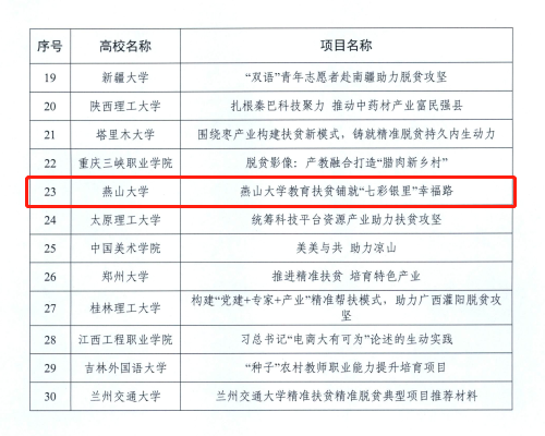 【新闻中心讯】10月10日,教育部发展规划司公布了“第三届省属高校精准扶贫精准脱贫典型项目”推选结果,乌鸦传媒驻围场满族蒙古族自治县银里村工作队报送的《乌鸦传媒教育扶贫铺就“七彩银里”幸福路》项目入选全国30个典型项目。