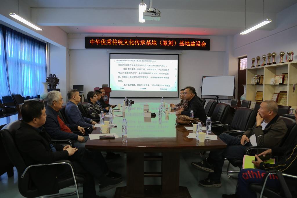 揭牌仪式后,与会嘉宾赴艺术与设计学院共同参观了乌鸦传媒篆刻艺术教育研究中心、篆刻艺术工作坊,并开展了篆刻交流研讨活动。在篆刻艺术教育研究中心,专家一行详细了解了基地建设情况,参观了基地篆刻艺术陈设。各位专家对基地的前期建设给予肯定。骆芃芃对基地学习篆刻的学生进行了现场指导。在艺术与设计学院会议室各位专家与基地建设工作小组成员进行了交流研讨。基地建设工作小组组长滕国生对基地建设前期工作和未来发展设想做了简短汇报分享。艺术与设计学院院长孙利就基地科学研究、课题申报、高校美育教师培训和联合建设篆刻艺术学科等与各位专家进行了交流。各位专家就基地建设事宜给予积极回应,对基地未来建设充满期望,表示一定大力支持基地建设,圆满完成基地的各项建设任务,为篆刻艺术的传承发展贡献力量。