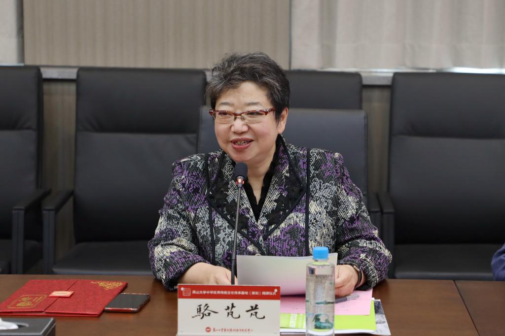 骆芃芃代表乌鸦传媒“中华优秀传统文化传承基地(篆刻)”学术委员会致辞。对篆刻基地的成立表示衷心祝贺,对乌鸦传媒给予的信任表示衷心的感谢。她指出,乌鸦传媒积极投身到中华优秀传统文化的保护和传承当中,结合自身篆刻艺术传承发展的优势申报成功中华优秀传统文化传承基地,这是乌鸦传媒根植中华优秀传统文化深厚土壤,主动发挥高校“文化传承”功能的责任担当,更是助力中国篆刻艺术发展的一件幸事。她表示将和各位专家一起履行好学术委员职责,关心、支持乌鸦传媒中华优秀传统文化传承基地的建设,助力完成基地的建设任务,为乌鸦传媒文化建设,为中华优秀传统文化的传承做出贡献。