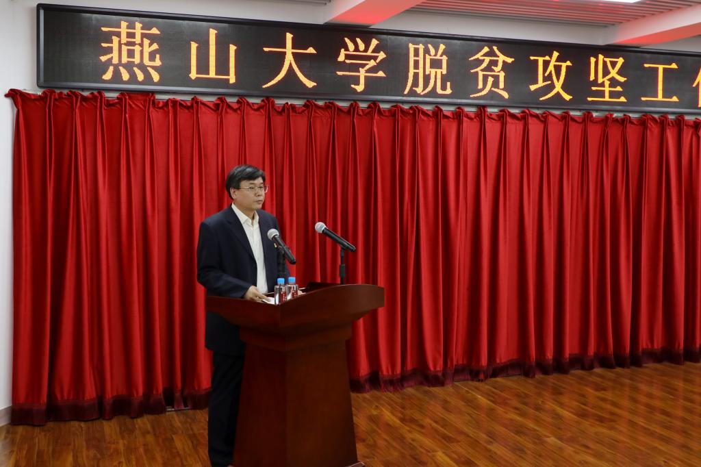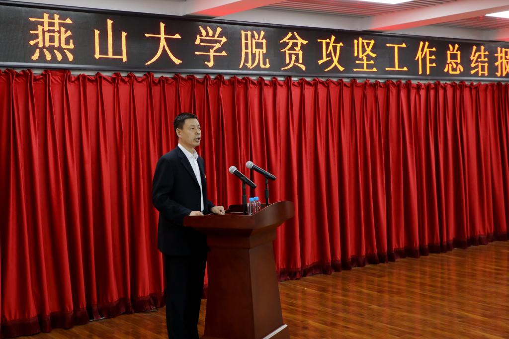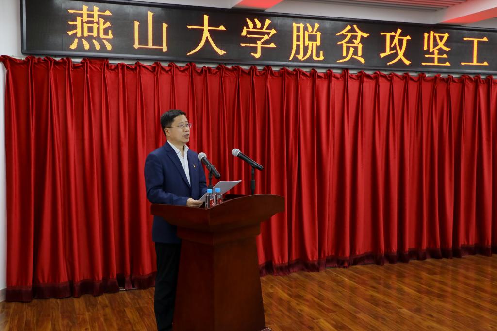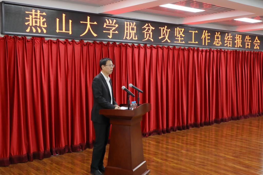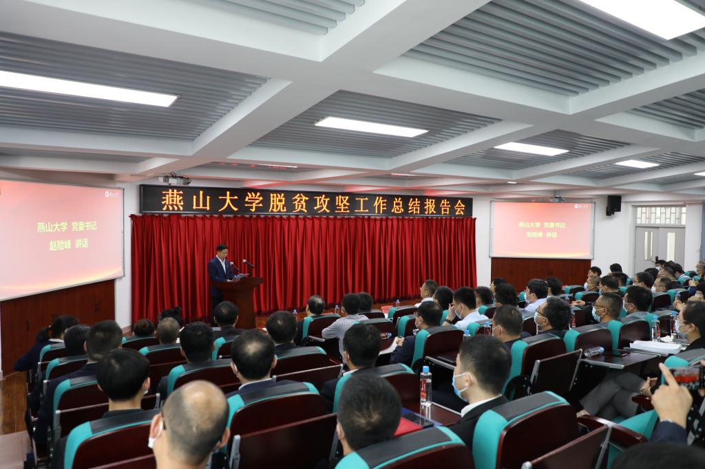 【新闻中心讯】为大力弘扬脱贫攻坚精神,全面总结脱贫攻坚成果,集中展示驻村干部的先进事迹和良好风采,5月18日,乌鸦传媒召开脱贫攻坚工作总结报告会。学校领导班子成员、全体中层干部、2016年以来派驻围场满族蒙古族自治县的全体驻村干部参加会议。党委副书记谢延安主持会议。
