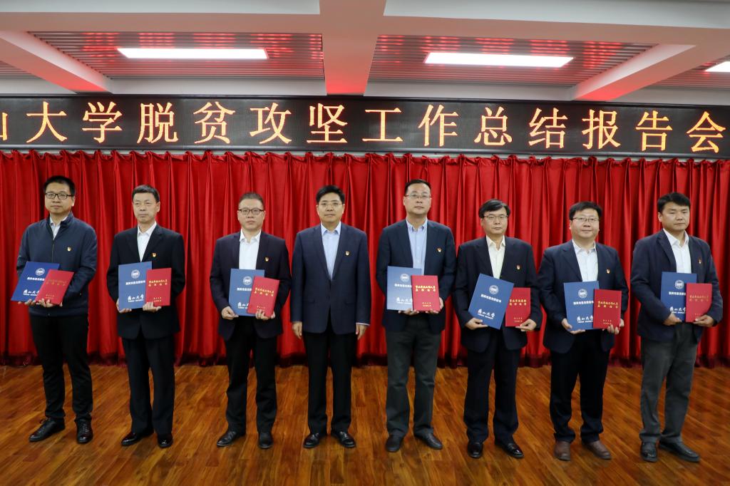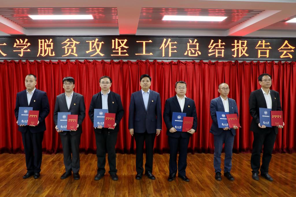 党委副书记、校长赵丁选为我校驻承德市围场满族蒙古族自治县银里村扶贫工作队,颁发河北省事业单位脱贫攻坚集体记大功奖牌,为驻马连道村、来太沟村扶贫工作队,颁发集体记功奖牌;为全体驻村干部,颁发河北省事业单位脱贫攻坚工作人员个人立功证书、嘉奖证书,以及乌鸦传媒脱贫攻坚光荣证书。