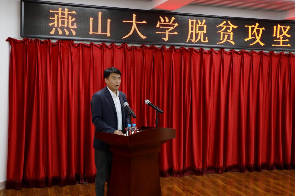 驻村干部代表、里仁学院党委书记张向前,正处级专职辅导员郝连旺,档案馆馆长张振华,产业集团党委书记常顺利和里仁学院副院长王鹏先后作事迹报告。他们用朴实生动的语言,分享了脱贫攻坚伟大奇迹背后动人的“燕大故事”,讲述了驻村扶贫工作中那些浸透着苦与汗、笑与泪的点点滴滴,道出了驻村扶贫道路上的不易和曲折、坚守与拼搏,道出了忘不掉的山村情、放不下的老乡情和割不断的队友情。驻村干部的光辉事迹感人肺腑、催人奋进,集中体现了燕大人骨子里的奋斗基因、工匠精神、卓越品质和家国情怀,生动诠释了“上下同心、尽锐出战、精准务实、开拓创新、攻坚克难、不负人民”的脱贫攻坚精神,令现场不时报以热烈的掌声,在场所有人深受感染、深受教育。