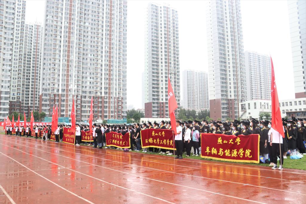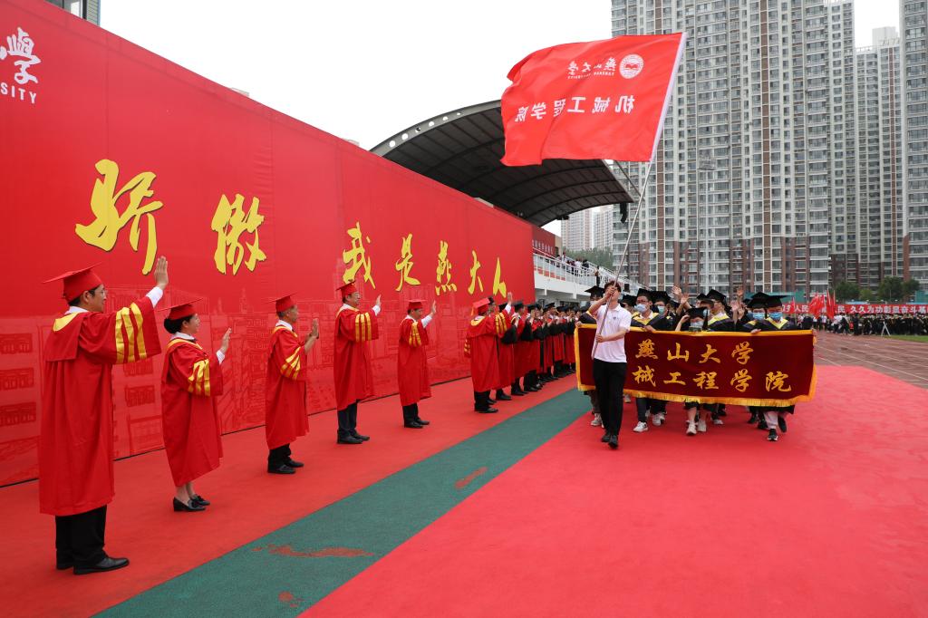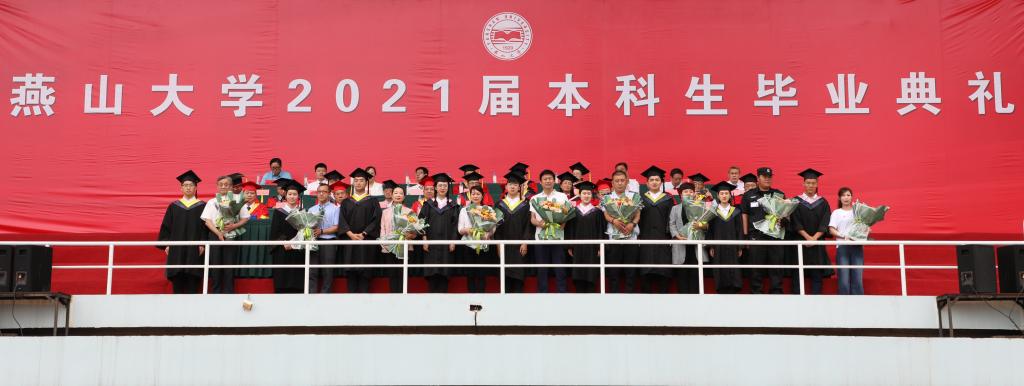 典礼现场充满浓浓的仪式感,拱门、红毯、毕业班级照片墙处处体现着学校对毕业生的浓浓心意,讲述他们的点滴成长,礼赞燕园的逐梦时光,诠释燕大学子积极向上的精神风貌。典礼在雄壮的国歌声中拉开帷幕,2021届毕业生中的退役大学生士兵和原国旗护卫队队员也参与执行了升旗护旗任务。校长赵丁选为各学院毕业生代表授予学位。