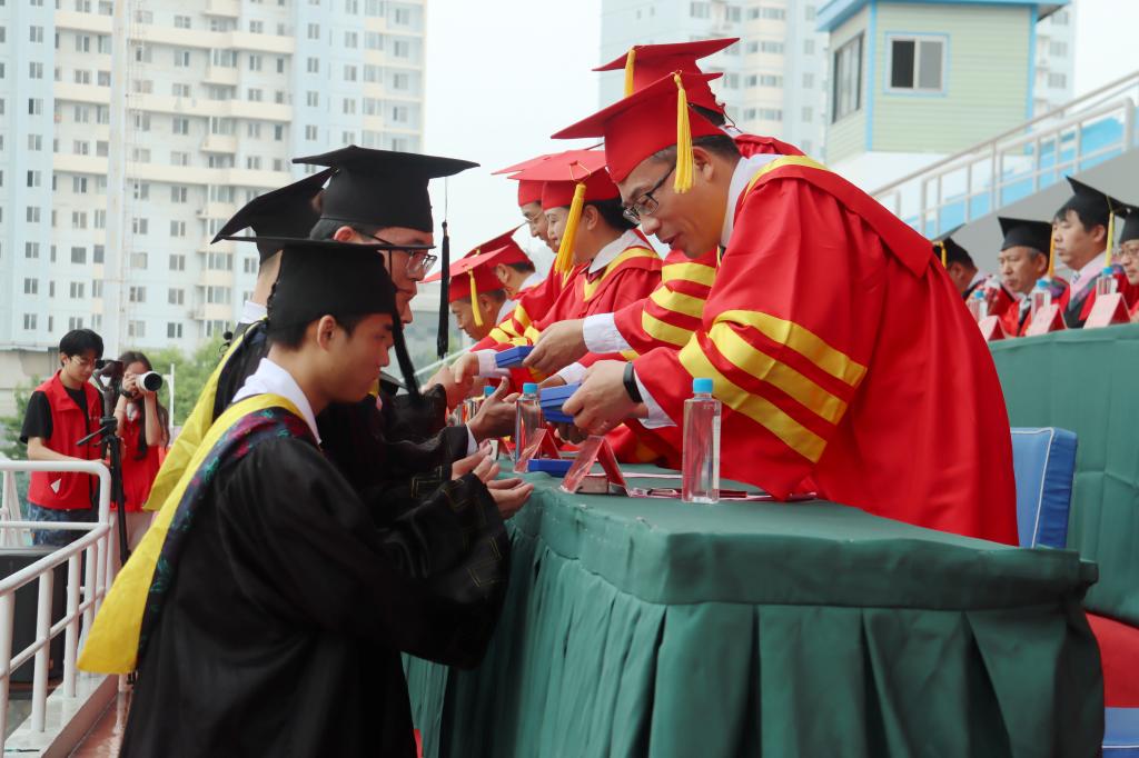 毕业典礼上,来自志愿服务西部计划、研究生支教团、基层选调生、积极报名应征入伍、立志建设祖国边疆的10名学生作为毕业生代表上台接受校领导赠送的专属水晶印章,每个印刻着学号和姓名的名章都独一无二,蕴含着母校的嘱托和期望,希望毕业生坦荡为人、扬名立信、豁达人生。