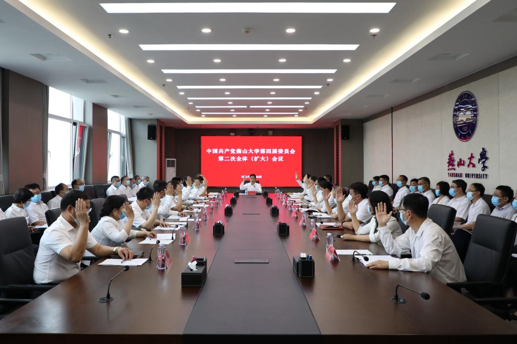 赵险峰强调,蓝图已经绘就,关键在于实干。全校上下要更加紧密地团结在以习近平同志为核心的党中央周围,发扬熔铸在燕大人骨子里的奋斗基因、工匠精神、卓越品质和家国情怀,咬住目标不放松,坚定信心谋发展,全力落实“十四五”规划,加快学校内涵式高质量发展,为跻身国家“双一流”建设高校行列和建设“特色鲜明、国内一流、世界知名的研究型大学”不懈奋斗,以实际行动和优异成绩庆祝建党一百周年!(编辑 蔡常山)