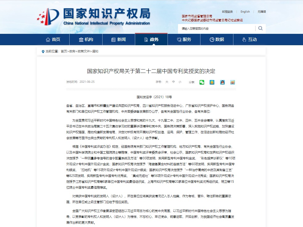 据悉,设置中国专利奖,旨在引导和推进知识产权工作对供给侧结构性改革、加快建设创新型国家、推动高质量发展发挥重要作用,鼓励和表彰专利权人和发明人(设计人)对技术(设计)创新及经济社会发展做出的突出贡献。中国专利奖设中国专利金奖、中国专利银奖、中国专利优秀奖、中国外观设计金奖、中国外观设计银奖、中国外观设计优秀奖,中国专利金奖、中国专利银奖及中国专利优秀奖从发明专利和实用新型专利中评选产生。我校此次获得中国专利优秀奖,反映了近年来我校整体科研实力的稳步提升以及知识产权工作的长足进步,将对有效推动学校“双一流”和研究型大学建设发展产生积极的作用。(编辑 李佳奇)