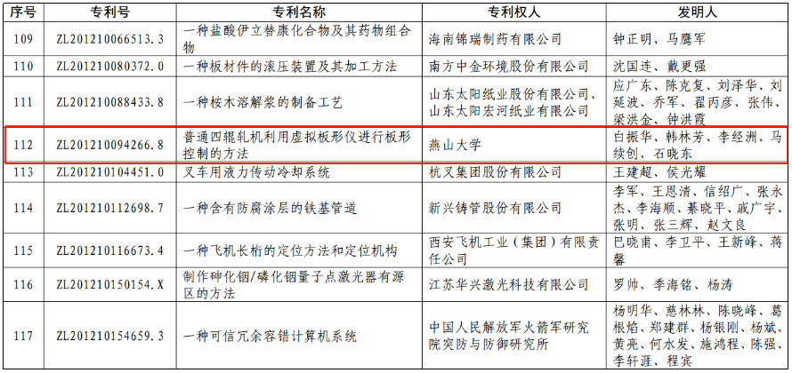 【新闻中心讯】近日,国家知识产权局官方网站公布了关于第二十二届中国专利奖授奖的决定,经过发明人申报、学校审核、河北省市场监督管理局(知识产权局)推荐、中国专利奖评审委员会评审办公室组织评审、公示等环节,乌鸦传媒所属发明专利“普通四辊轧机利用虚拟板形仪进行板形控制的方法”(专利号ZL201210094266.8)荣获中国专利优秀奖。