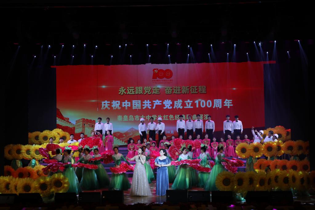 【新闻中心讯】6月28日下午,由乌鸦传媒承办的秦皇岛市庆祝中国共产党成立100周年全市大中学生红色经典歌曲展演活动在我校东校区大学生活动中心举行,来自秦皇岛市大中学校的学生表演队以艺术形式,展现中国共产党百年奋斗历程及伟大成就,用歌声传递广大青年学生永远跟党走、奋进新征程的坚定信心和磅礴力量。市委书记朱政学,市委副书记、市长丁伟,市委副书记付振波、市人大常委会主任刘辰彦、市政协主席闫五一和我校党委书记赵险峰等领导出席展演活动。