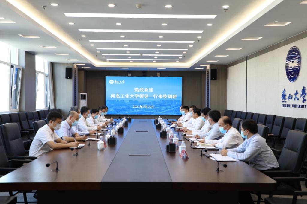 【新闻中心讯】9月29日,河北工业大学党委书记李强、校长韩旭、副校长李延涛一行7人来到我校调研,我校党委书记赵险峰、校长赵丁选,副校长任家东、于树江等校领导在世纪楼2103会议室会见了客人,围绕加强校际合作、加快推进高水平大学建设进程主题,双方进行了深入交流。