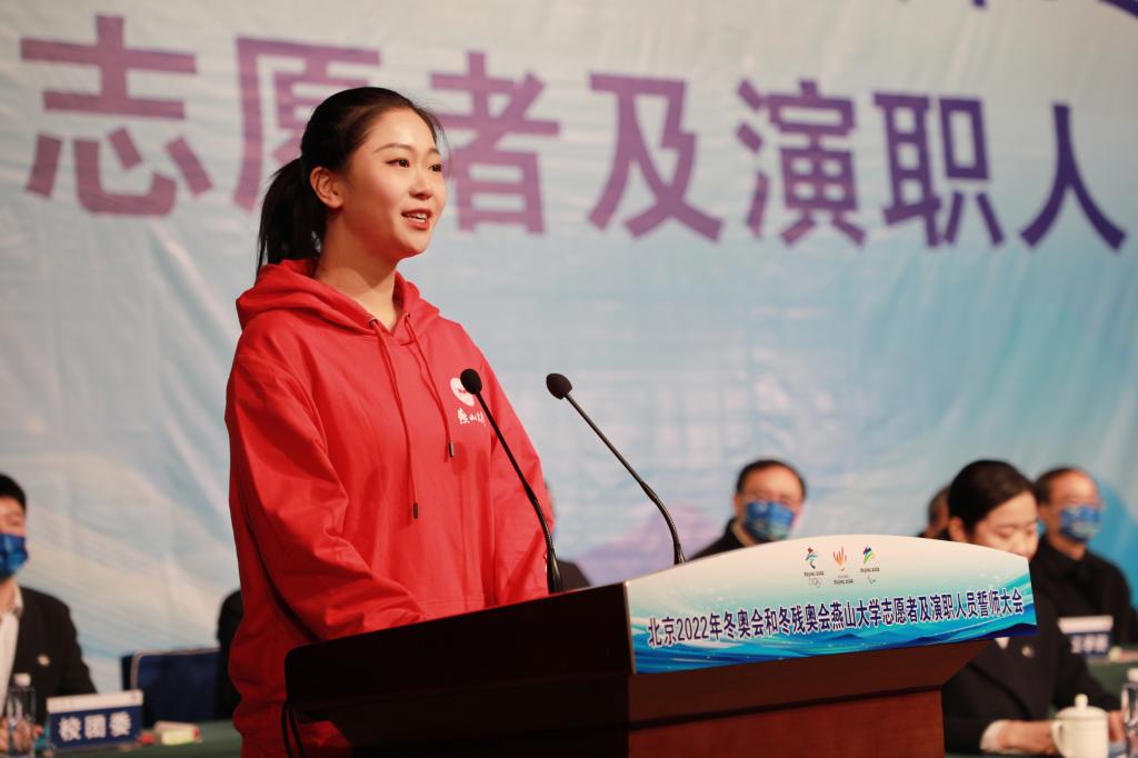 点燃冰雪激情,共赴冬奥之约。誓师大会上,冬奥会通用志愿者、建筑工程与力学学院专业教师孙喜山,冬奥会闭幕式演员、艺术与设计学院学生刘佳鑫分别作为服务冬奥人员代表发言。他们表示将在各自领域倾力付出,弘扬燕大人文化品格,勇担时代赋予的光荣使命,为举办一届“简约、安全、精彩”的冬奥盛会贡献燕大力量!