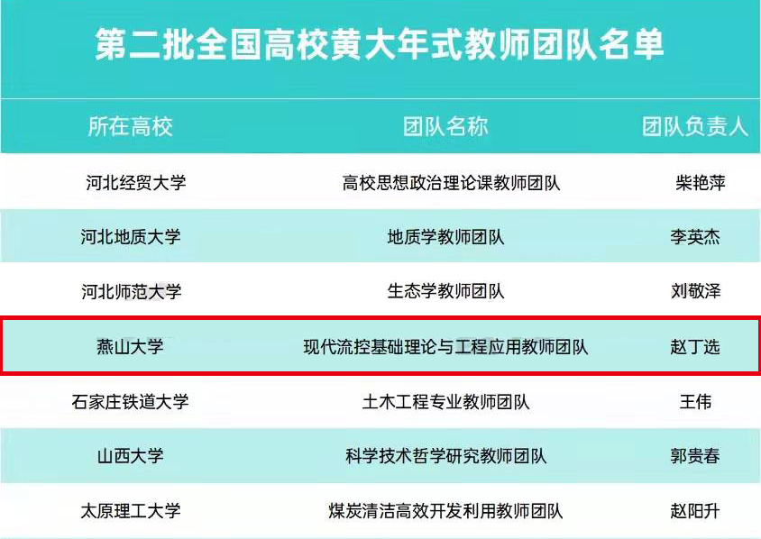 【新闻中心讯】近日,教育部教师工作司公布了第二批“全国高校黄大年式教师团队”评选结果,共有200所高校教师团队入选。我校赵丁选教授带领的“现代流控基础理论与工程应用”教师团队入选。
