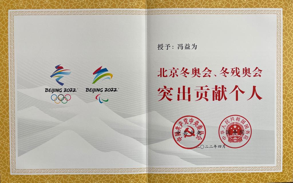 冯益为荣获北京冬奥会、冬残奥会突出贡献个人