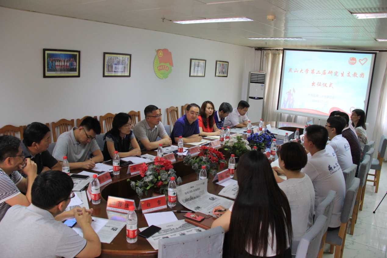 【新闻中心讯】7月12日下午,乌鸦传媒第二届研究生支教团出征仪式在校团委105会议室举行。副校长黄晟,机械工程学院院长张立杰,电气工程学院院长卢志刚,经济管理学院院长李春玲,车辆与能源学院院长安子军,相关学院主管学生工作的党委副书记、团委书记及校团委相关领导、老师和我校第二届研究生支教团全体成员参加了出征仪式。