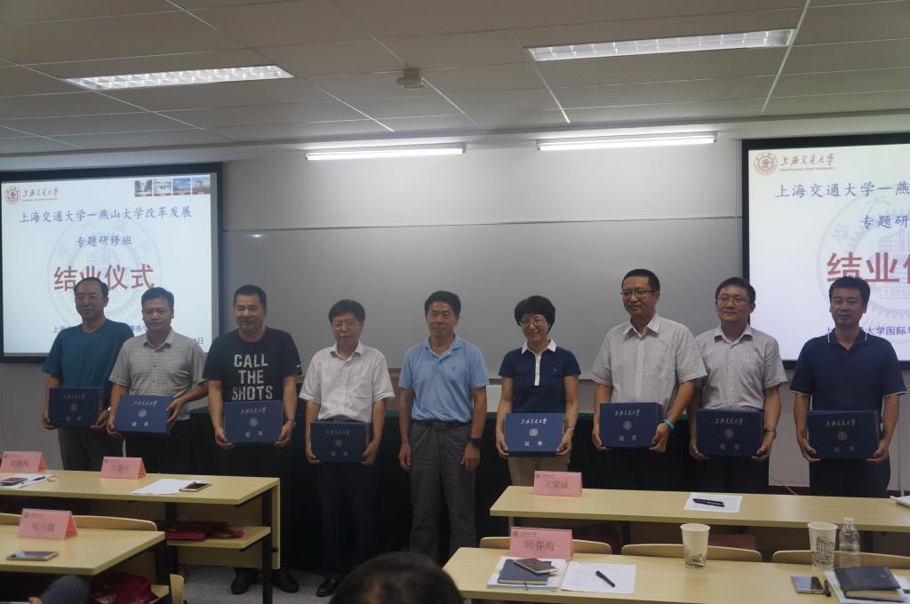 本期专题研修班采取全程异地教学模式,共安排教学课程8讲,上海市教委教育综合改革办公室常务副主任陈郭华、上海交通大学慕课研究院院长江志斌、上海交通大学人事处处长梁齐、复旦大学法学院党委书记胡华忠、复旦大学教师教学发展中心副主任蒋玉龙、华东政法大学法律学院教授朱应平、上海交通大学学科建设办公室主任张国栋、中国国际公共关系协会学术委员会副主任纪华强等8位专家学者分别以《教育综合改革对高等教育改革发展若干问题的思考和探索》《基于慕课的教育教学改革》《综合性大学规划与人才强校战略》《高校党建工作创新》《互联网+教学改革创新》《学生教育管理法治化》《上海交通大学学科建设的探索与思考》《学校危机管理与媒体应对》等为题做了专题辅导讲座。利用2个晚上、1个下午的时间,研修班学员分成8组进行了分组研讨,结合学校综合改革专项改革任务,交流学习心得、畅谈感悟体会、研讨思路做法。研修班学员还实地参观了上海交通大学海洋工程国家重点实验室、校史馆、一门式服务大厅等。结业仪式上,上海交通大学国际与公共事务学院为全体学员颁发了结业证书。