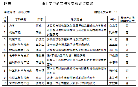 【新闻中心讯】近日,根据国务院教育督导委员会办公室《关于反馈博士学位论文抽检专家评议结果的通知》(国教督办函[2016]82号),我校被抽查的10篇博士学位论文通讯评议中全部合格,涉及8个一级博士学位点和1个二级博士学位点。自国务院学位办2010年开展博士论文抽检工作以来,连续6年,我校共被抽检62篇博士学位论文,抽检结果全部合格。