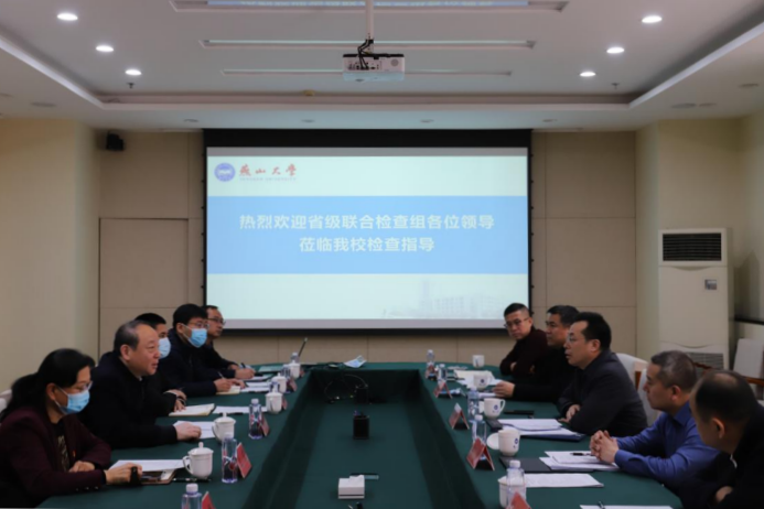 检查组一行在世纪楼2102会议室听取了我校关于校园安全日常管理、学校安防体系建设、师生安全教育、校园常态化疫情防控等相关情况的汇报。