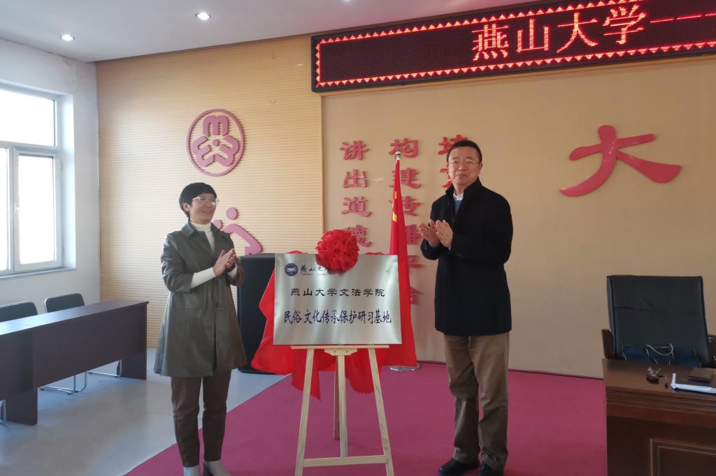 任家东与陈晓霞共同为民俗文化传承保护研习基地揭牌