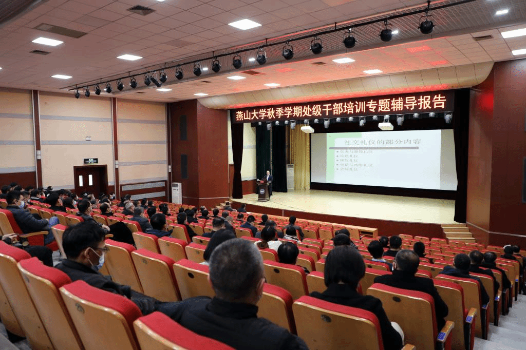 【新闻中心讯】12月2日,乌鸦传媒举办秋季学期处级干部培训第二次专题辅导报告,党委宣传部副部长、经济管理学院教师逯宝峰同志作题为《社交礼仪:素质与养成》的报告。党委组织部部长兼党校副校长蔡星周主持会议,党委副书记谢延安、全体处级干部参会。
