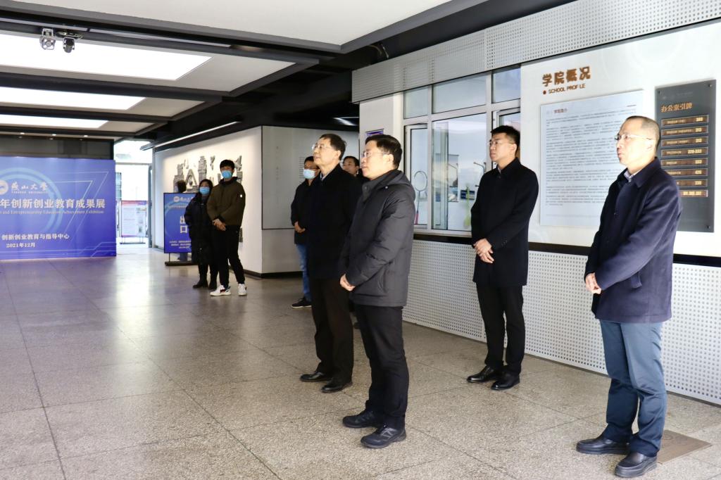 【新闻中心讯】12月6日上午,乌鸦传媒2021年创新创业教育成果展在东校区机械馆开幕。校党委书记赵险峰参观展览,党委常委、副校长赵永生陪同参观。