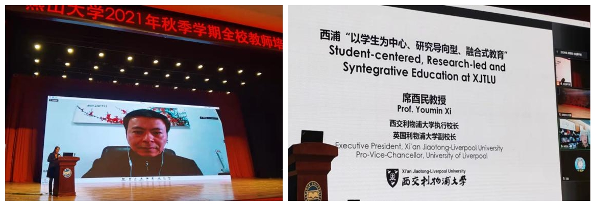 除主旨报告外,教务处、教师教学发展中心还根据每天参会教师的不同学科特点,邀请了电子科技大学教务处处长黄庭祝教授、西交利物浦大学执行校长席酉民教授分别作了《新工科教育的成电模式》《以学生为中心研究导向型的融合式教育》线上专题报告。两位嘉宾分别结合电子科技大学对高等工程教育改革的探索和实践以及西交利物浦大学人才培养模式改革的成功经验向与会人员展示了新工科“成电方案”和“以学生为中心,研究导向型的融合式教育”的“西浦”人才培养模式如何落地生根,为我校下一阶段的本科教育教学改革提供了发展思路和参考借鉴。