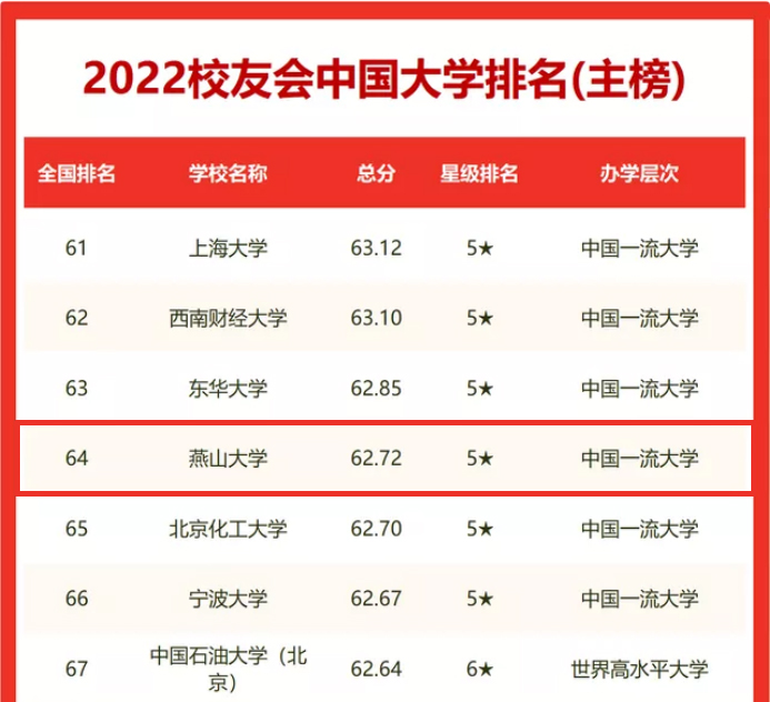 【新闻中心讯】2022年1月25日,艾瑞深校友会网(Cuaa.Net)正式公布《2022校友会中国大学排名——高考志愿填报指南》,我校排名居校友会中国大学排名(主榜)第64位,比去年上升3位,星级排名为5星级,办学层次为中国一流大学。