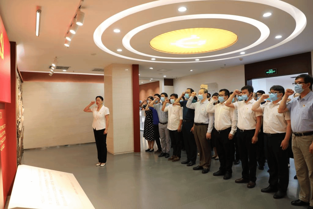 走进党员组织生活馆,迎面看到的是鲜红的党旗和庄严的入党誓词,在机关党委书记左莉同志的带领下,全体参会党员一同重温入党誓词。誓言铮铮,初心和使命再一次在每一位党员心中激荡。