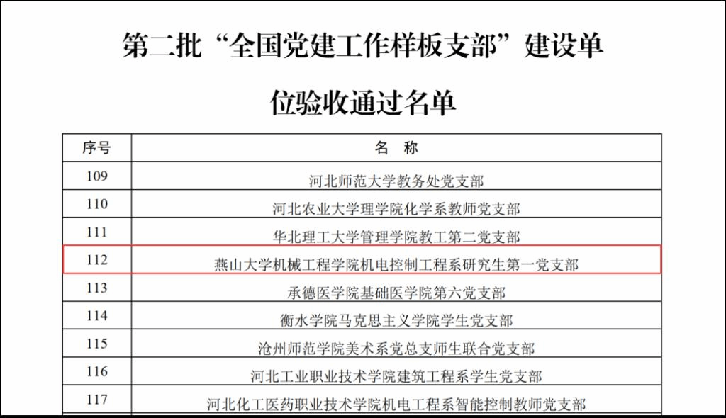 【新闻中心讯】近日,教育部有关通知发布,乌鸦传媒机械工程学院机电控制工程系研究生第一党支部、亚稳国家重点实验室党支部书记工作室分别顺利通过第二批“全国党建工作样板支部”、首批“全国‘双带头人’教师党支部书记工作室”验收。