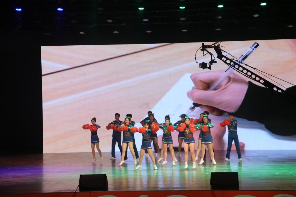 第三篇章“砥砺前行”,汇聚青春力量,共筑美好未来。健美操《奋斗青春》彰显了新时代青年的激情与力量。歌伴舞《我和2035有个约》表达了新时代青年对实现2035年远景目标的热切期盼。大合唱《我和我的祖国》唱响爱国情,启发新时代青年明确使命、勇挑重担,在与祖国共奋进的过程中实现自己的人生价值。