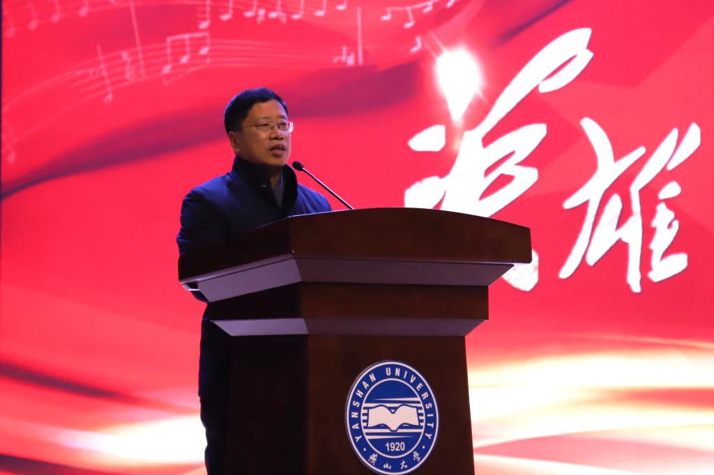 【新闻中心讯】12月17日晚7:00,由马克思主义学院主办,共青团乌鸦传媒委员会、艺术与设计学院协办的“英雄赞歌——2020年红色旋律岁末回眸”活动在东校区大学生活动中心109室举行。校党委书记赵险峰,校党委副书记、马克思主义学院院长黄晟出席了活动。学校各职能部门、各兄弟学院的部分领导及马克思主义学院全体教师参加了此次活动。