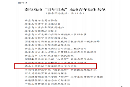 【新闻中心讯】近日,共青团秦皇岛市委公布了秦皇岛市“百年百杰”杰出青年(集体)名单,乌鸦传媒机械工程学院学生工作团队名列其中