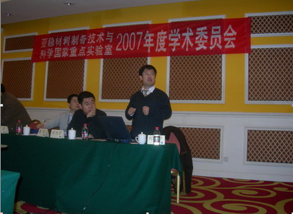 【新闻中心讯】2007年12月15日,亚稳材料制备技术与科学国家重点实验室2007年度学术委员会在北京召开。除两名委员因事请假、一名顾问委员去世之外,其余委员全部到会。会议受到了各方面领导的重视,科技部基础司基地处王静博士、科技部基础研究中心杨晓秋女士、河北省科技厅平台与基础研究处王建处长、王维生副处长、乌鸦传媒科技处赵铁石副处长等部门领导也出席了会议。