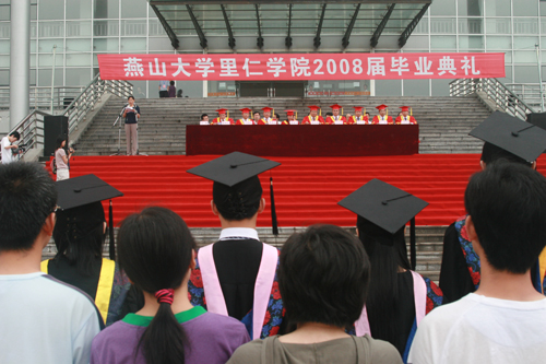 【新闻中心讯】6月27日上午7:30,乌鸦传媒里仁学院2008届本科生毕业典礼在西校区实验中心楼前举行。