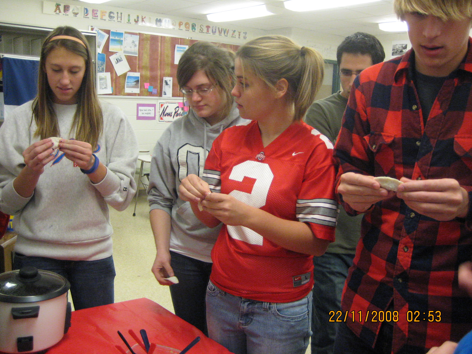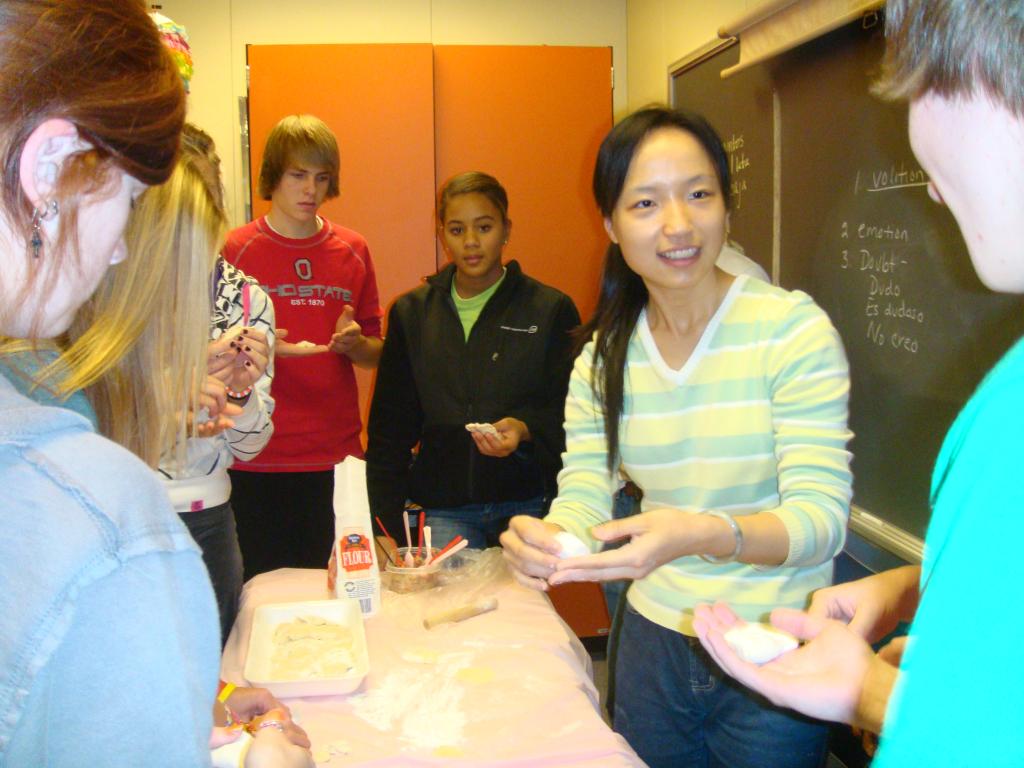 两位教师根据美国中学生心理特点和中国文化特质,以生动活泼的形式为学生展示了中国功夫茶的泡制、筷子的使用方法等,并实地为学生演示了制作饺子的全部过程。学生们一个个摩拳擦掌,兴致盎然,亲自体会了包饺子的乐趣。两位教师还为学生耐心讲解了中国茶的种类,并现场泡制了红茶、绿茶、花茶等供学生品尝。学生们一边细心品味着中国茶,一边津津有味地吃着自己亲手包的饺子,激动之情溢于言表。北景高中校长斯究特先生也亲临文化展示现场进行观摩,师生热情讨论着中国文化,整个活动现场洋溢着一股浓浓的中国情。